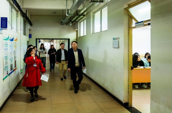 2026年3月9日上午,学校组织开展了新学期“开学第一课”教学检查工作。由薛峰、何菲等校领导带队,教务处、实习实训处、学生处、后勤处、保卫处等职能部门负责人组成四个检查组,深入各教学区域,对教师到岗、学生出勤、课堂秩序和教学设施运行等情况进行全面巡查。